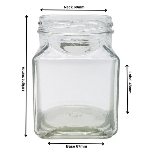 260ml Clear Square Glass Jar (63/400)