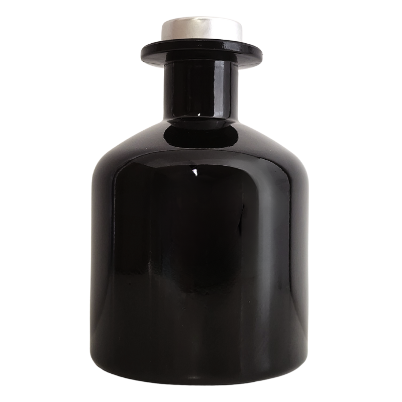 200ml Black Glass Diffuser Bottle and Silver Plug Cap