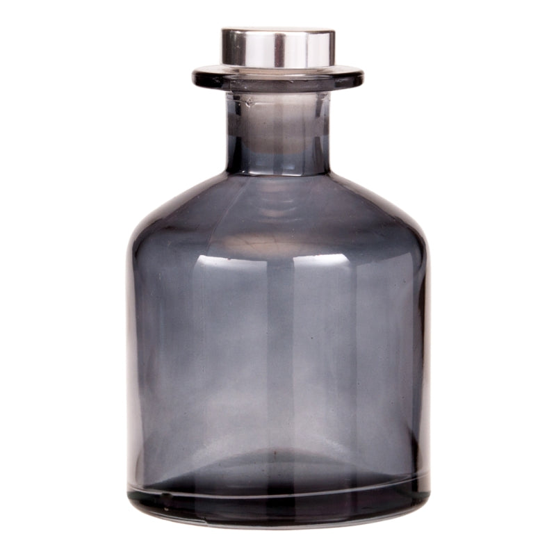 200ml Black-Tinted Glass Diffuser Bottle and Silver Plug Cap